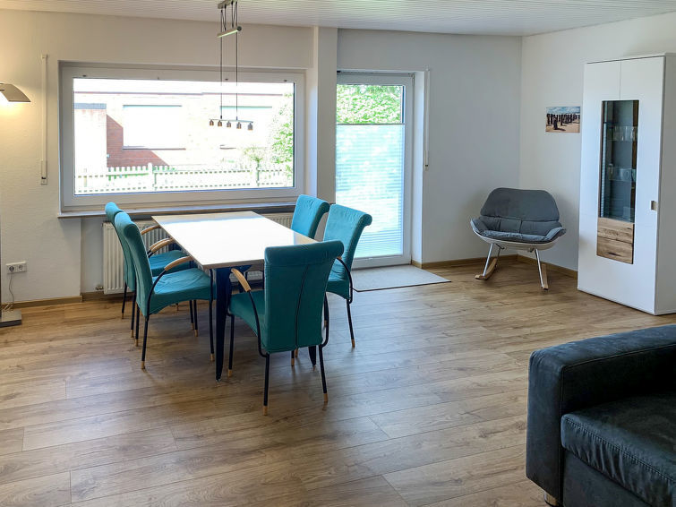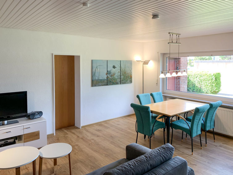 Gezellig rijtjeshuis, gerenoveerd in 2020. In de plaats, centrale ligging, van zee, 600 m van het strand. Voor alleengebruik: kleine tuin (omheind) met gazon. In het huis: centrale verwarming. Parkeerplaats bij het huis. Supermarkt 1.1 km, restaurant 100 m, bakkerij 100 m, café, bushalte 200 m, treinstation "Norddeich" 1.5 km, veerboot 1.5 km, zandstrand 600 m, openluchtzwembad 14 km, overdekt zwembad 100 m. Golfterrein (18 holes) 8 km, midgetgolf 100 m.