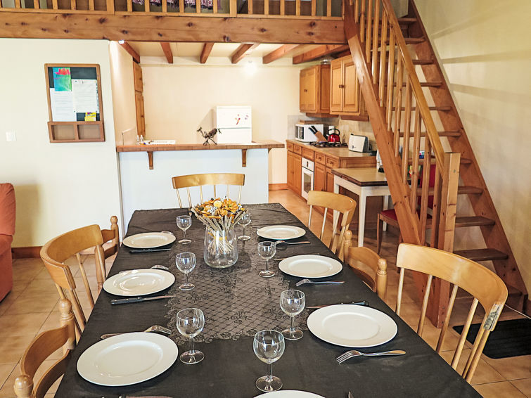 "Le Pigeonnier", huis in een rij 4-kamers 100 m2. Eenvoudig en mooi ingericht: woon-/eetkamer met eettafel en TV (Flatscreen TV). Uitgang naar het terras. 2 kamers, elke kamer heeft 1 2-pers bed (140 cm, lengte 190 cm). Open keuken (oven, afwasmachine, 4 kookpitten (vlammen), broodrooster, waterkoker, magnetron, diepvriezer, elektrische koffiemachine). 2 douche/WC's. Bovenverdieping: 1 kamer met 1 2-pers bed (140 cm, lengte 190 cm). Galerij met afgeschuinde daken met 4 bedden (90 cm, lengte 190 cm). Elektrische verwarming. Terras 20 m2 gedeeltelijk overdekt. Terrasmeubelen. Uitzicht op het bos. Geschikt voor families. Rookvrij huis. Maximaal 2 huisdieren/honden toegestaan. Rookmelders. Aanbod door een particulier volgens art. 155, IV van CGI.