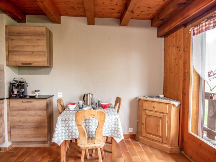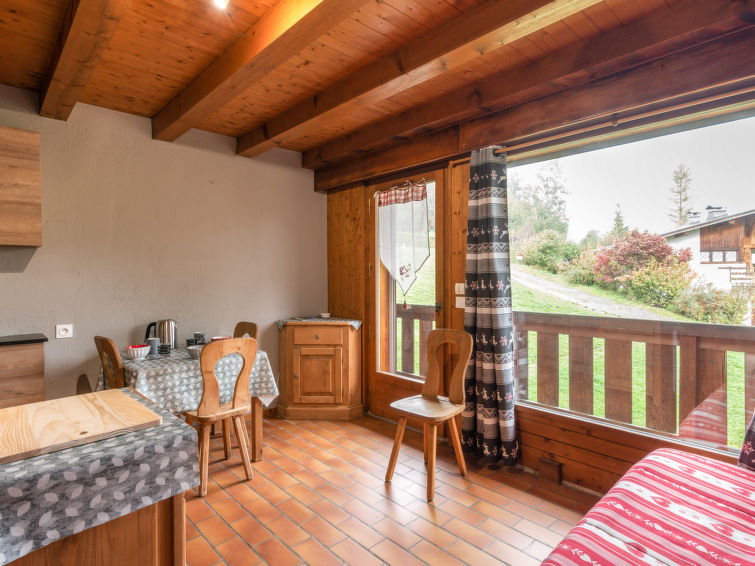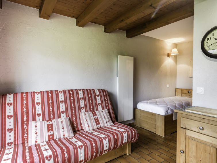 "Les G'rets", studio 1-kamer 22 m2 op de 1e verdieping met 1 bed (80 cm), 1 divanbed (140 cm, lengte 200 cm). Uitgang naar het balkon. Kookhoek (2 keramische glas kookplaten, broodrooster, waterkoker, elektrische koffiemachine, pads voor de koffiemachine (tassimo) extra, combimagnetron). Bad/WC. Elektrische verwarming. Klein balkon, op het noorden gelegen en op het noordoosten gelegen. Mooi uitzicht op de bergen. Ter beschikking: Internet (Internet (WiFi), extra). Geen lift.