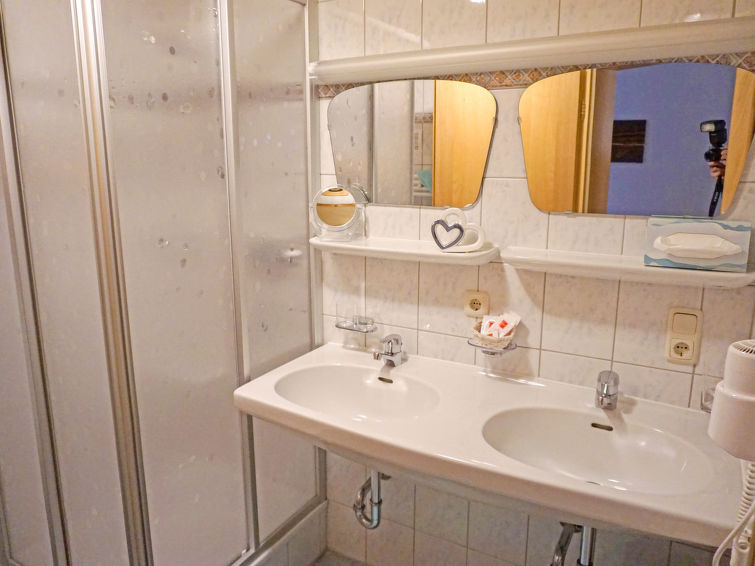 "Apart 107 Wiesenhof", appartement 3-kamers 55 m2 op de 3e verdieping. Modern en gezellig ingericht: hal. 2 2-pers. kamers. Woonkeuken (4-pits kookplaat, oven, afwasmachine, broodrooster, waterkoker, elektrische koffiemachine) met eethoek, Sat-TV, Flatscreen TV en radio. Douche, aparte WC, dubbele wastafels. Ter beschikking: kluis, haardroger. Niet rokers woning. Geen lift.
