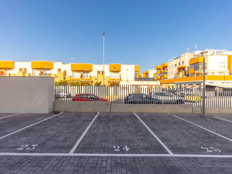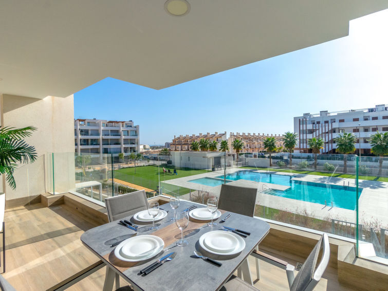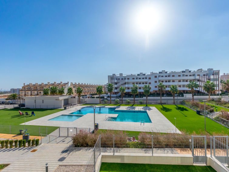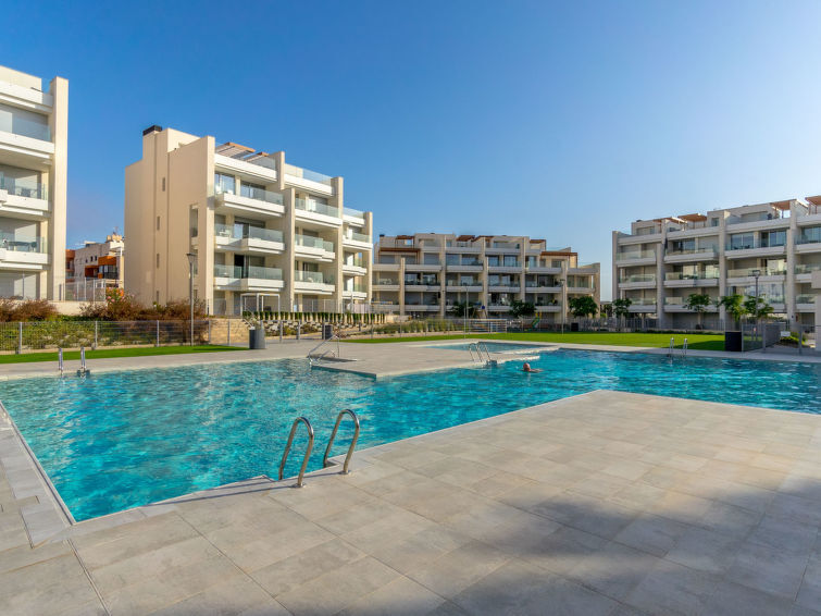 Moderne, mooi flatgebouw "Ema Residencial", van 4 verdiepingen, bouwjaar 2023. 3 km van het centrum van La Zenia, 4 km van het centrum van Punta Prima, 7 km van het centrum van Dehesa de Campoamor, gebied met weinig verkeer, 2.8 km van zee, 2.8 km van het strand. Voor medegebruik: terrein (omheind), openluchtzwembad (seizoensgebonden beschikbaarheid: 01.Jan. - 31.Dec.). Kinderzwembad, buitendouche, kinderspeelplaats. In het huis: lift. Levensmiddelenwinkel, supermarkt 950 m, restaurant 100 m, bushalte "Platja Flamenca – Mercadillo" 350 m, treinstation "Orihuela" 27 km, zandstrand "Playa la Zenia" 3 km. Golfterrein (18 holes) 1.9 km. De eigenaar accepteert geen groepen.