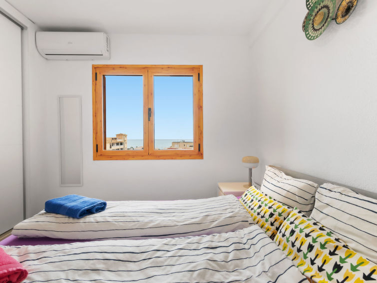 "Viñamar", appartement 3-kamers 74 m2 op de 5e verdieping. Ruim en licht, comfortabel en mooi ingericht: open woon-/eetkamer met Digitale TV, air-conditioning en heteluchtverwarming. Uitgang naar het terras. 1 kamer met 1 2-pers bed (1 x 160 cm, lengte 200 cm), TV, air-conditioning en heteluchtverwarming. 1 kamer met 1 2-pers bed (1 x 140 cm, lengte 200 cm), air-conditioning en heteluchtverwarming. Open keuken (oven, 3 keramische glas kookplaten, broodrooster, waterkoker, elektrische koffiemachine). Douche/WC. Balkon, terras. Terrasmeubelen, zitgelegenheid. Mooi uitzicht op zee en het dorp. Ter beschikking: wasmachine, strijkijzer, haardroger. Internet (WiFi, gratis). Garage nr. 45. Rookvrij huis. VT-515004-A // Reg. Nr.: ESFCTU00000305900013457100000000000000000VT-515004-A6