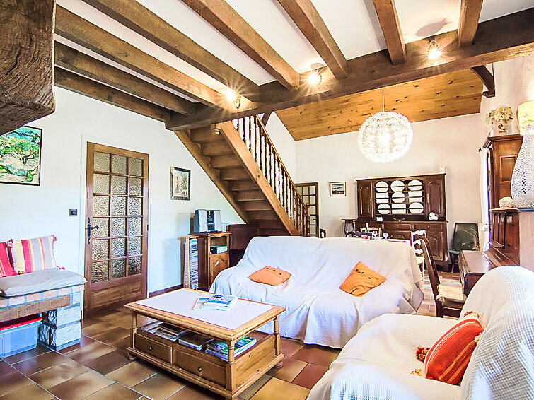 Huis 5-kamers 160 m2 op 2 verdiepingen. Eenvoudig en rustiek ingericht: woon-/eetkamer met TV (Flatscreen TV), radio, stereo-installatie en DVD. 1 kamer met 1 2-pers bed (1 x 140 cm). 1 kamer met 1 2-pers bed (1 x 140 cm). Keuken (3-pits kookplaat, oven, afwasmachine, magnetron, diepvriezer). Badkamer, aparte WC. Bovenverdieping: open galerij met 1 bed (90 cm). 1 kamer met 1 2-pers bed (1 x 140 cm). 1 kamer met 1 2-pers bed (1 x 140 cm, lengte 190 cm). Douche, aparte WC. Gas-verwarming. Terrasmeubelen, barbecue (6). Uitzicht op het bos. Ter beschikking: wasmachine, kinderstoel, kinderbed tot 2 jaar. Internet (Internet (WiFi), gratis). Rookmelders. In plaats van een afgesloten slaapkamer bevinden sommige slaapgedeeltes zich in een open ruimte (galerij, nis, etc.). 40209000013MK