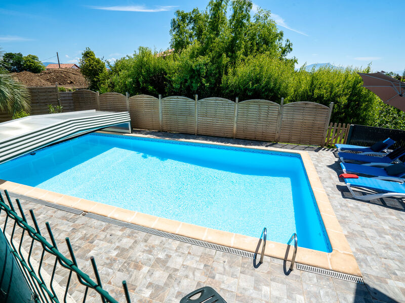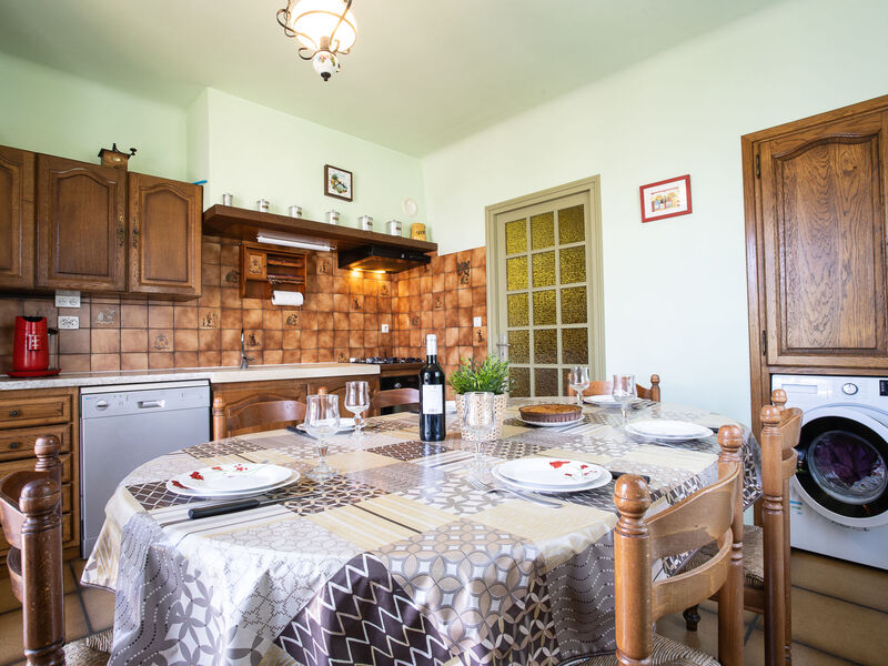 Huis 5-kamers 150 m2. Comfortabel en mooi ingericht: woon-/eetkamer 32 m2 met TV (Flatscreen TV), DVD. Uitgang naar het balkon, op het zuiden. 1 kamer met 1 2-pers bed (140 cm, lengte 190 cm). Uitgang naar het balkon. 1 kamer met 2 bedden (90 cm, lengte 190 cm). Groot keuken (oven, afwasmachine, 4 kookpitten (vlammen), broodrooster, waterkoker, diepvriezer, elektrische koffiemachine, combimagnetron) met eettafel. Uitgang naar het terras, naar het zwembad. Bad/WC, aparte WC, dubbele wastafels. Verwarming. Bovenverdieping: 1 kamer met 2 bedden (90 cm, lengte 190 cm). 1 kamer met 1 2-pers bed (1 x 140 cm, lengte 190 cm), wastafel en douche. Uitgang naar het balkon, op het zuiden. Terras 30 m2, op het zuidoosten gelegen. Terrasmeubelen. Zeer mooi panoramazicht op de bergen, het zwembad en de tuin. Ter beschikking: wasmachine, strijkijzer, kinderbed, haardroger. Internet (WiFi, gratis). Parkeerplaats (omheind, 3 Auto's). Rookvrij huis. Maximaal 1 huisdier/hond toegestaan. Rookmelders. 64038000246E7