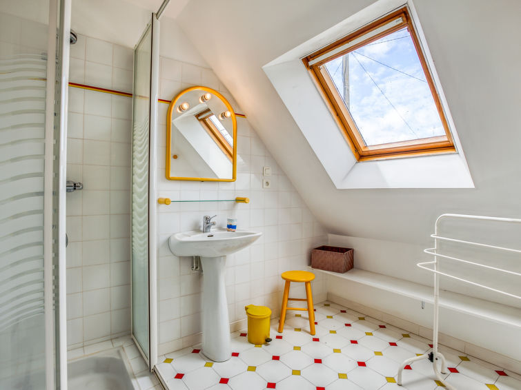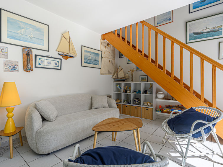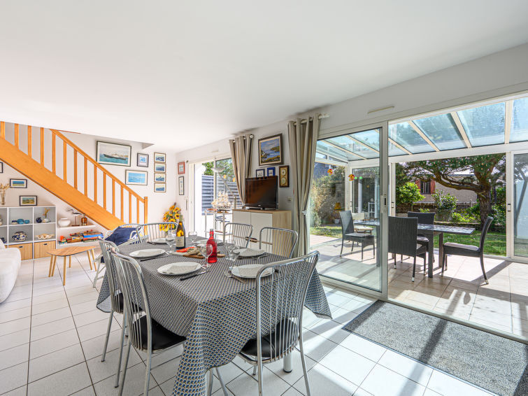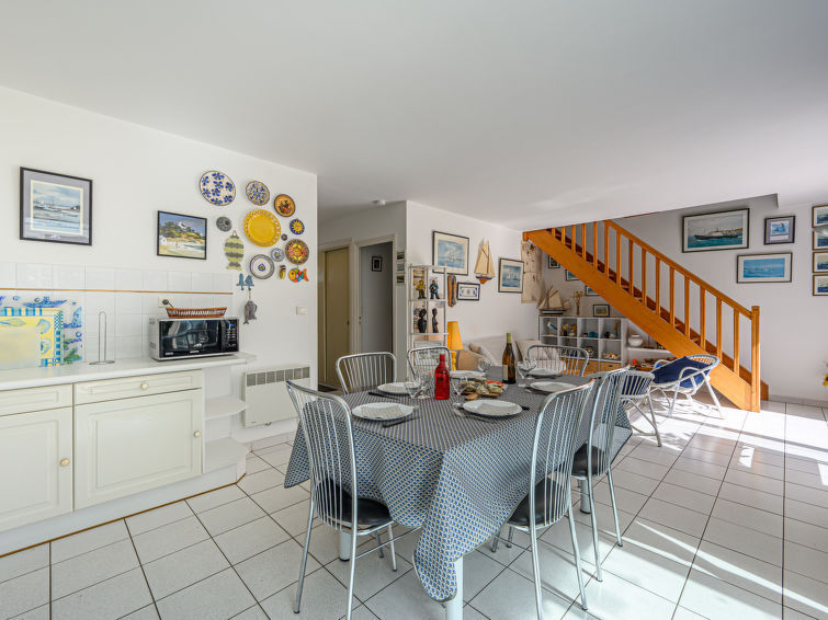 Saint Pierre Quiberon: Eengezinswoning "Ty Jeanne", van 2 verdiepingen. In de wijk Penthièvre, 60 m van zee, 60 m van het strand. Winkel 4 km, supermarkt 4 km, restaurant, bar 300 m, bakkerij 200 m, bushalte 500 m, zandstrand "Grande plage de Penthièvre" 60 m, overdekt zwembad 10 km, thermaalbad "Thalassothérapie de Quiberon" 12 km. Surfschool 3 km, tennis 1 km. Attracties in de buurt: Carnac et les Alignments 12 km, La Trinité sur Mer 16 km, Vannes 35 km, Lorient 39 km, Presqu'ile de Quiberon, Belle ile en Mer, Houat, Hoedic. De sleuteloverdracht vindt plaats bij het agentschap Interhome in Quiberon, 10 km.