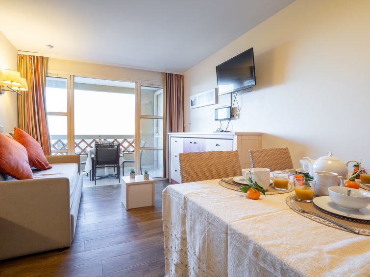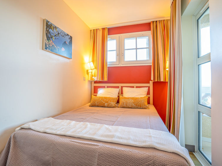 "Le Belvédère (D4 256)", appartement 2-kamers 28 m2 op de 1e verdieping. Woonkamer met 1 uitschuifbaar bed (2 x 80 cm, lengte 190 cm), TV (Flatscreen TV), stereo-installatie, DVD en elektrische verwarming. Uitgang naar het terras. 1 kleine kamer met 1 2-pers bed (140 cm, lengte 190 cm), elektrische verwarming. Uitgang naar het terras. Kookhoek (afwasmachine, 4 keramische glas kookplaten, broodrooster, waterkoker, diepvriezer, elektrische koffiemachine, pads voor de koffiemachine (Senséo), combimagnetron). Badkamer, aparte WC. Elektrische verwarming. Terras 6 m2, overdekt. Terrasmeubelen, ligstoelen (1). Uitzicht op zee en Golfbaan. Ter beschikking: Internet (WiFi, extra). Parkeerplaats nr. 2313 (overdekt, 1 Auto), hoogte 180 cm. Niet rokers woning. Maximaal 1 huisdier/hond toegestaan. Rookmelders. Aanbod door een particulier volgens art. 155, IV van CGI. FR 65782