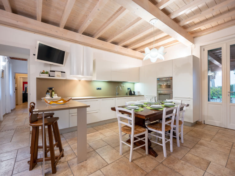Huis 4-kamers 250 m2, op het zuidwesten gelegen. Comfortabel en gezellig ingericht: woonkamer met TV, stereo-installatie en air-conditioning. Groot keuken (oven, afwasmachine, 4 inductiekookplaten, broodrooster, waterkoker, magnetron, diepvriezer, elektrische koffiemachine) met air-conditioning. Uitgang naar de tuin, naar het terras. Bad/douche/WC. Bovenverdieping: 2 2-pers. kamers, elke kamer heeft air-conditioning. 1 kamer met 1 x 2 stapelbedden, 1 2-pers bed en air-conditioning. Douche/WC. Verwarming met zonne-energie, air-conditioning, vloerverwarming. Solarstroom. Parketvloeren, natuurstenen vloeren. Groot terras 30 m2. Terrasmeubelen, barbecue (verrijdbaar), ligstoelen (6), loggia. Ter beschikking: wasmachine, kinderbed tot 2 jaar, haardroger. Internet (WiFi, gratis). IT005014C2SR7ND2MI