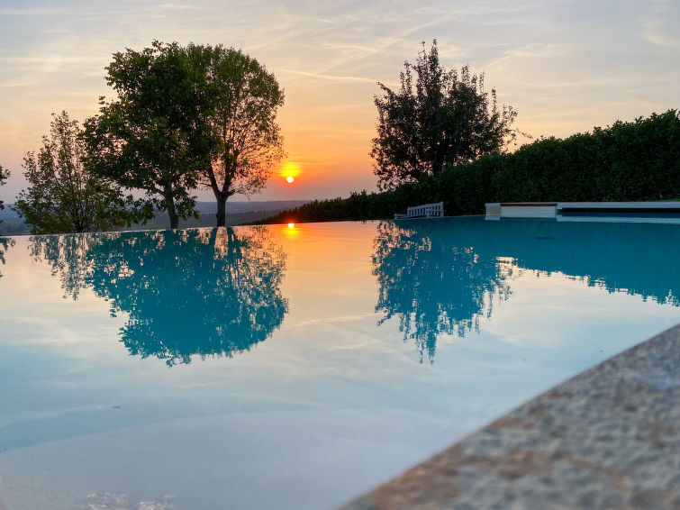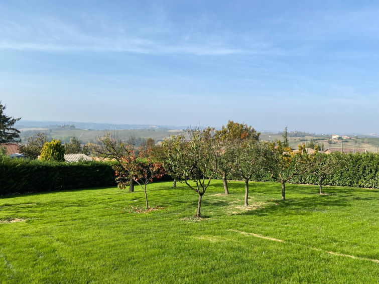 Calliano 10 km van Asti: Mooi, comfortabele cottage "Magna Fina", van 2 verdiepingen, omgeven door weiden, velden en wijngaarden. In het gehucht San Desiderio, 3 km van het centrum van Calliano, geïsoleerde, rustige, zonnige ligging op een heuvel. Voor alleengebruik: terrein 3.000 m2, groot tuin (omheind) met gazon en planten, openluchtzwembad verwarmd (9 x 4 m, 150 cm diepte, seizoensgebonden beschikbaarheid: 01.Apr. - 01.Nov.) met oprolbaar afdekscherm en zout-elektrolyse. Buitendouche, poolhouse met koelkast, douche en fornuis, onderhoud zwembad door de eigenaar/tuinman. Overdekte parkeerplaats (voor 2 auto's) bij het huis. Oplaadstation. Winkel 3 km, supermarkt 8 km, restaurant 200 m, bushalte "San Desiderio" 800 m, treinstation "Asti" 10 km. Attracties in de buurt: Asti 10 km, Alba 30 km, Turin 70 km. Auto noodzakelijk. Baby uitrusting (incl.). Gesloten residentie met een elektrische deur.