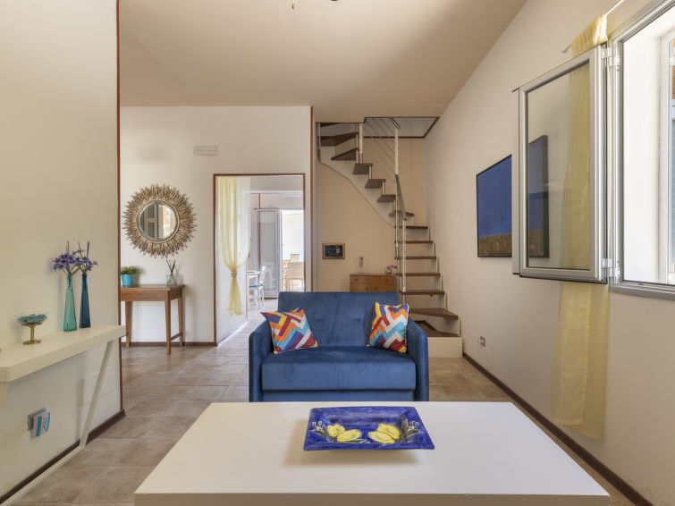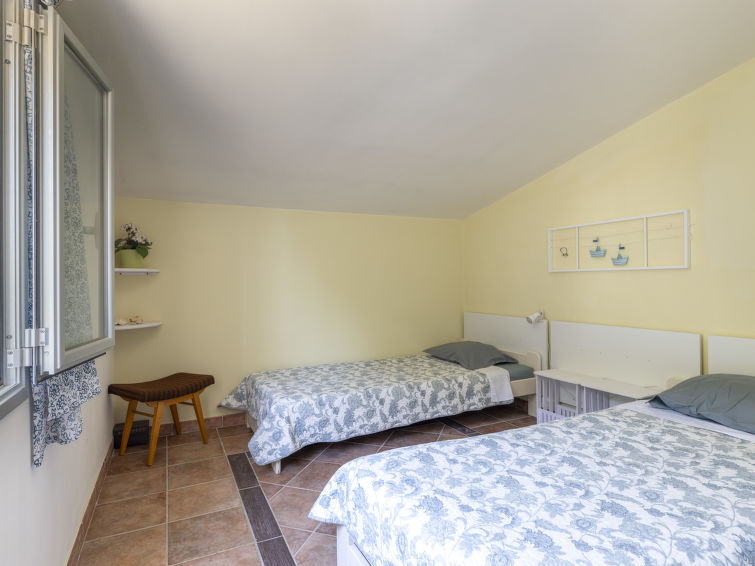 "Norbert", halfvrijstaand huis 4-kamers 75 m2 op 2 verdiepingen. Comfortabel en mooi ingericht: woonkamer met TV (Flatscreen TV), ventilator. Groot keuken (afwasmachine, 4 keramische glas kookplaten, broodrooster, waterkoker, magnetron, elektrische koffiemachine, combimagnetron) met eettafel, air-conditioning en heteluchtverwarming. Uitgang naar het terras. Douche/WC. Boiler (80 liter). Bovenverdieping: (wenteltrap) hal met air-conditioning en heteluchtverwarming. Uitgang naar het terras. 2 2-pers. kamers, elke kamer heeft air-conditioning en heteluchtverwarming. Uitgang naar het balkon. 1 kamer met afgeschuinde daken met gordijn hoogte van het plafond 140 - 220 cm met 2 bedden. Douche/bidet/WC. Verwarming, heteluchtverwarming, boiler (50 liter). Verwarming alleen beschikbaar van 01.12. tot 31.03, Verwarming niet in alle ruimtes. Balkon 8 m2, terras 13 m2, terras 18 m2. Terrasmeubelen, barbecue, ligstoelen (4). Zeer mooi uitzicht op zee. Ter beschikking: wasmachine, kluis, strijkijzer, klamboe, kinderstoel, kinderbed tot 2 jaar (extra), haardroger. Internet (Internet (WiFi), gratis). Parkeerplaats (2 Auto's). Rookmelders, brandblusser. IT089017C2F2EVGFHH