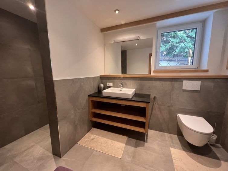 "Lechner", appartement 3-kamers souterrain. Licht, gerenoveerd, mooi en modern ingericht: hal. Woon-/eetkamer met 1 divanbed, eettafel, Kabel-TV en Flatscreen TV. Uitgang naar de tuin, naar het terras. 2 2-pers. kamers. Open keuken (afwasmachine, 4 keramische glas kookplaten, broodrooster, waterkoker, elektrische koffiemachine). 2 douche/WC's. Parketvloeren, natuurstenen vloeren. Groot terras, groot tuin. Terrasmeubelen, barbecue, ligstoelen. Mooi panoramazicht op het landschap. Ter beschikking: Internet (Internet (WiFi)). Niet rokers woning. Brandblusser. 50613-018294-2023